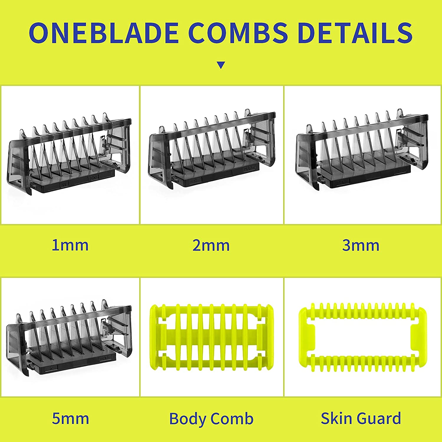 Guide Comb Attachments for Philips One Blade & OneBlade Pro QP2520 QP2530 QP2620 QP2630 QP6510 QP6520 Body Skin Face Hair Clippers Beard Trimmer Replacemen Kit Guards (6pc)